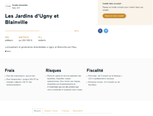 Pour certains projets, un onglet Documents a même été ajouté – notamment pour les infos réglementaires sur les projets minibon/obligation.